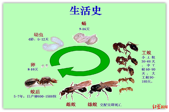 據了解,紅火蟻源於美洲南部,是一種主要的入侵害蟲,並被世界自然保護聯盟組織認定為最有害的100名入侵物種之一。自2004年以來,目前分佈已擴大到我國多地,專家分析其原因或為外地疫區運入草皮、帶土苗木時不慎引入。