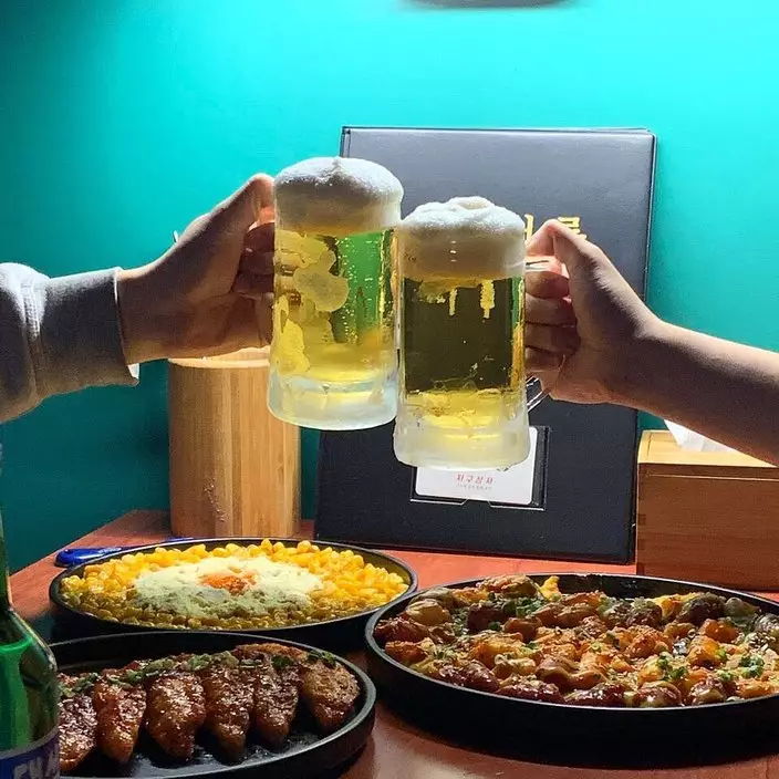 這款別出心裁的自助燒酒桶來自釜山一家宇宙主題的潮流居酒屋地球商社(지구상사)。從店中裝潢就可以感受到一股濃濃的復古太空風。