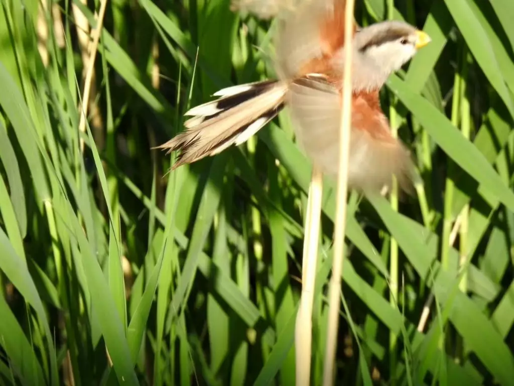 早晨7點,北京麋鹿生態實驗中心研究員郭耕正在苑內例行巡查,他走上文化橋,看到一隻母綠頭鴨正帶著成群的小鴨子戲水,便端起了相機,想要記錄下這溫馨一刻。誰知,當他把鏡頭稍稍向蘆葦盪中移了移,一隻長著大尾巴、通體呈現黃褐色的鳥「飛」進了屏幕,「震旦鴉雀!」郭耕趕忙連拍了好幾張,也就幾秒鐘的工夫,這隻「鳥中大熊貓」就飛上了柳樹,消失在了視野之外。