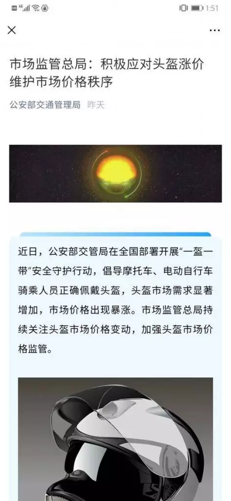 動車必須戴頭盔”的文案,在朋友圈原地轉型炒起了頭盔生意。同樣的套路,同樣的配方,「倒爺」們把頭盔價格炒上了天:價格從十幾二十多元一個,瘋狂漲到了上百元一個。