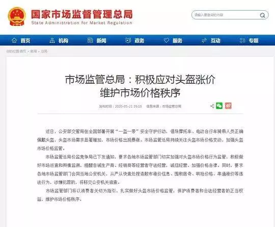 動自行車安全頭盔需求集中釋放,部分企業和平台銷售的安全頭盔價格暴漲。公安部已與國家市場監督管理總局聯繫溝通,並指導各地公安機關積極配合市場監管部門依法嚴查價格違法行為,斬斷哄抬頭盔價格的違法鏈條。