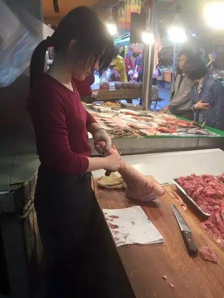 有本港網友聲稱,「賣肉」女神在秀茂坪街市工作。但其實她是台灣人,名叫張采婕,在台北東門市場的肉檔工作,亦都會幫手包餛飩出售,她不時會在Facebook分享肉檔的工作趣事。