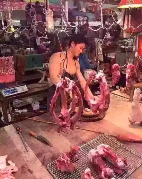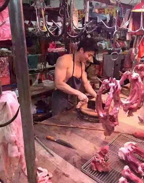 除了「賣肉」女神,網民早2日亦瘋傳廣西南寧一個豬肉小販,這個小販不但靚仔,一身肌肉更令女網友尖叫,獲封「豬肉男神」。中台兩岸的豬肉小販質素都這麼高,一眾香港代表也要加油增值啦。