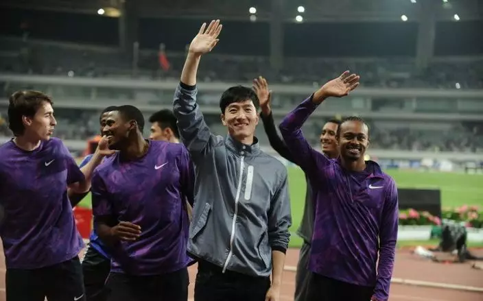 劉翔發表感言後,曾經是他的對手和好友運動員現身,劉翔和他們一一擁抱致意。