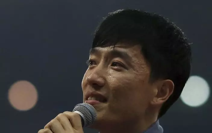 深受港人愛戴的「欄王」劉翔現身上海體育場,面對八萬名民眾,發表退役演說,正式向「粉絲」告別。他致辭時數度哽咽,眼眶泛紅。
