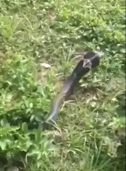 從網民轉載的片段顯示,該蛇長約一米半,全身黑色,在頭部有白色花紋,而且疑正張開,顯出眼鏡蛇的特徵。該網民一路尾隨該蛇,直至牠走入草叢,失去蹤影。