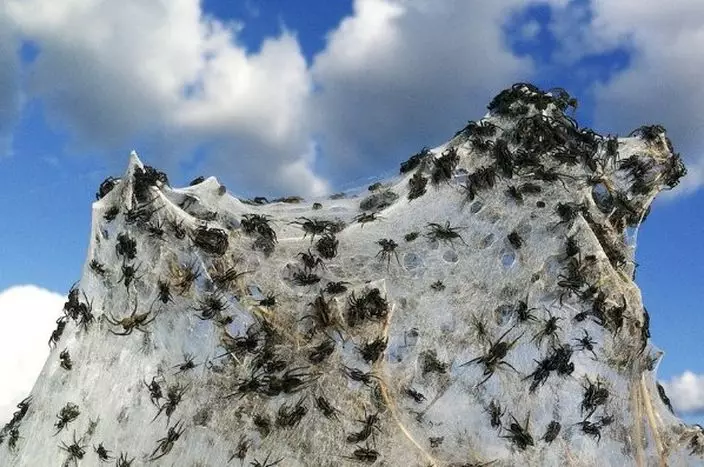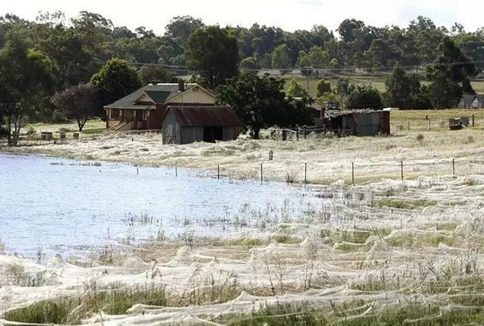 天空除了落雨、落雪和落雹,竟然還會「落蜘蛛」?澳洲新南威爾士經歷一場恐怖「蜘蛛雨」,成千上萬隻蜘蛛從天而降,小鎮四周覆蓋蜘蛛網,白茫茫一片彷如冬天積雪。