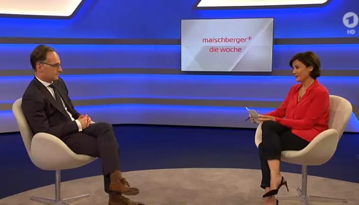德國外長馬斯接受電視採訪。