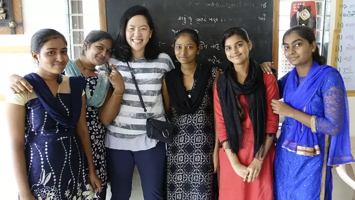 伯樂林為印度失學婦女提供教育計劃「Second Chance」,令她們能在社會爭取更好的發展機會。筆者程珍(左三)在印度艾哈邁達巴德探訪計劃學員。