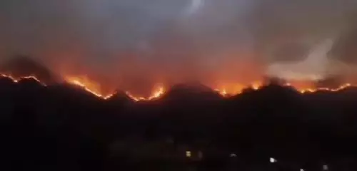 據當地網友報料,昨天(6月10日)晚19時起,位於攀枝花仁和城區附近的山頂發生明火燃燒。當晚21時許,山頂火線逐漸明顯。現場視頻顯示,山頂火線蜿蜒並連成一線。
