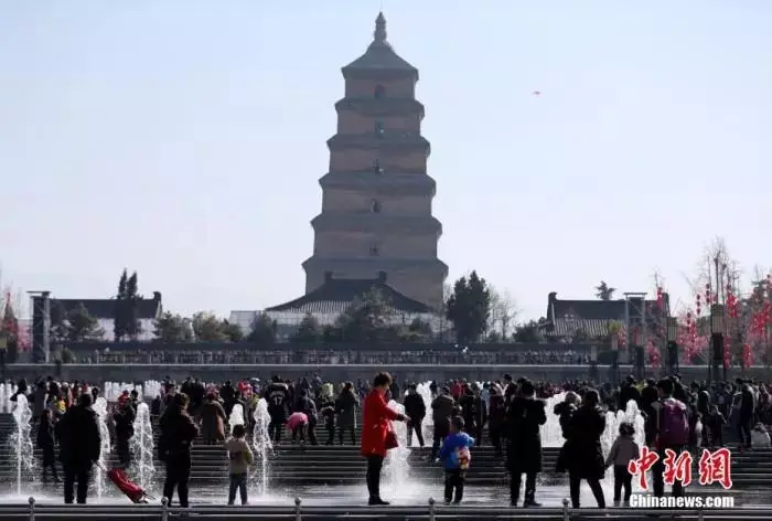 資料圖:西安大雁塔北廣場迎來了大量遊客。中新社記者 張遠 攝