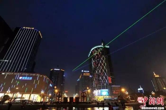資料圖:成都天府廣場上演「激光秀」。劉傑 攝