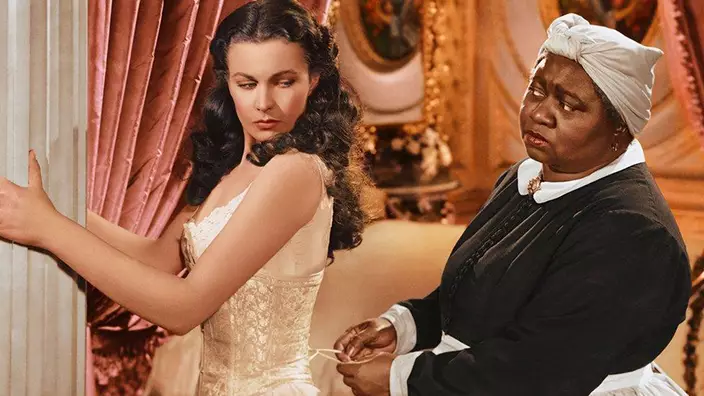 《亂世佳人》黑人女僕Mammy(右)對園莊主人Scarlet(左)忠心耿耿,兩人均在奧斯卡獲獎。