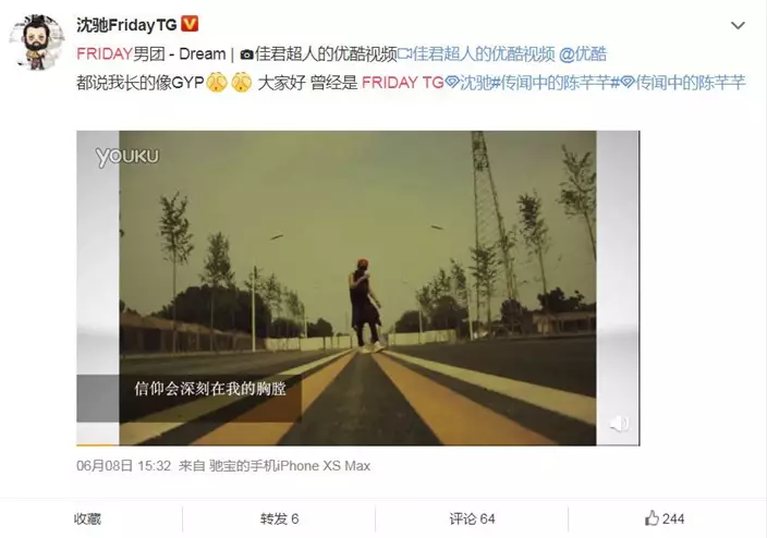 不過最好笑的是沈馳本人也看到了相關微博,更直接回覆:「我是中國Friday TG 沈馳」,介紹自己是男團Friday的成員。