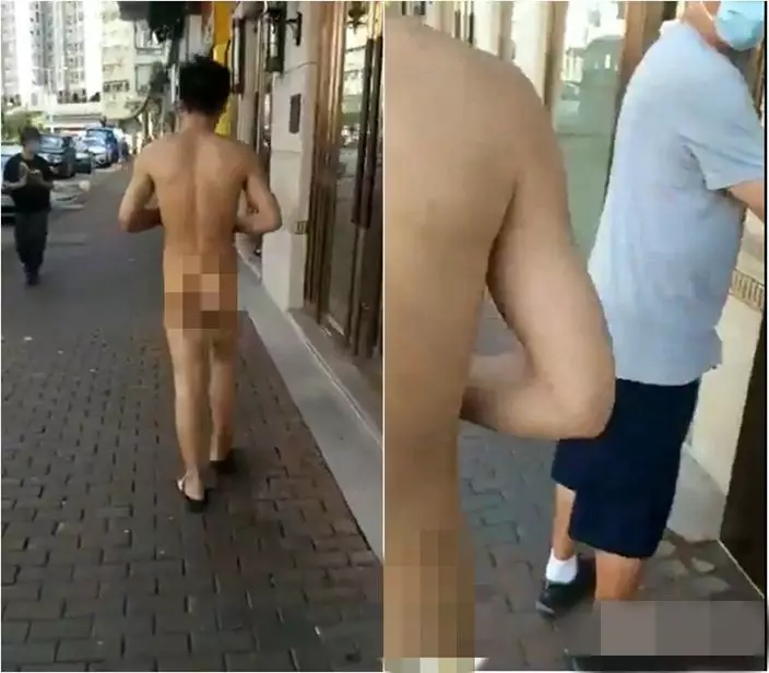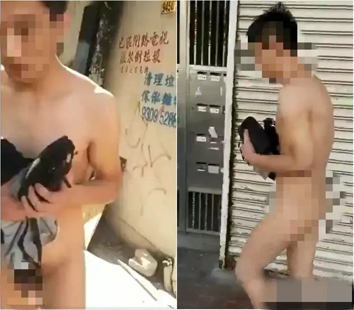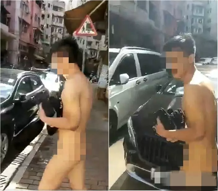 網上流傳片段,片中出現的地方一帶色情場所林立,事發時間尚早,多間商店尚未營業。片中顯示,一名全裸男子按攝影者呼喝,全身一絲不掛,只穿上一對人字拖於旺角兜圈。事主手抱衣物,從後巷步出後沿旺角塘尾道行走。途中,亦有不少路人避開該名男子。