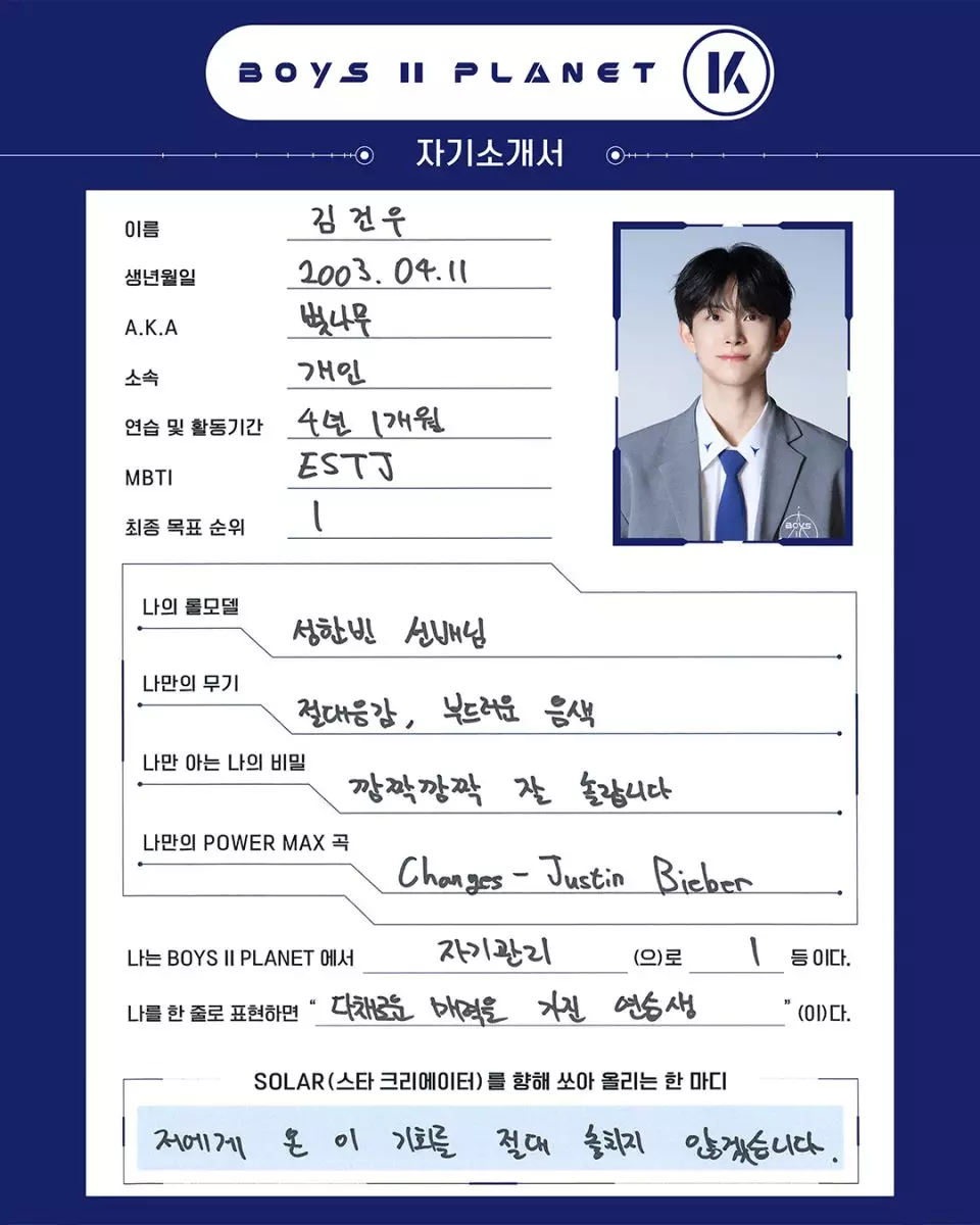 金虔佑(김건우)是K組主題曲Center「C位」練習生。BOYS II PLANET官方X圖片