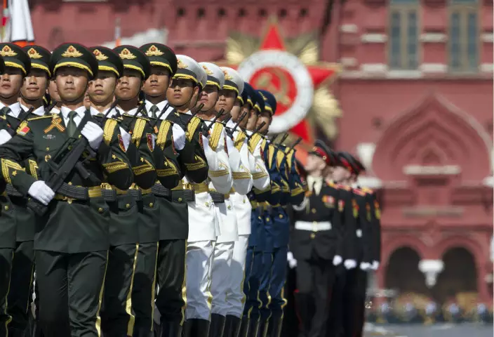 今天,在莫斯科紅場舉行的慶祝反法西斯戰爭勝利70周年暨蘇聯衛 國戰爭勝利70周年閱兵式上,中國派出了最豪華的陣容。112名 中國人民解放軍組成的方隊,由一位少將擔任領隊,走過紅場。 而站在閱兵主席台上的,還有中國國家主席習近平。