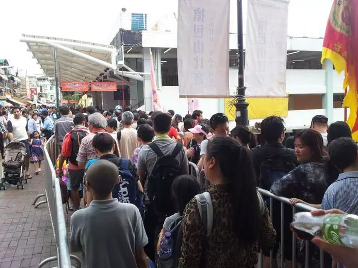 大批「朝聖者」觀賞完歷時兩小時的飄色巡遊,於下午4時陸續前往碼頭,乘坐渡輪離開長洲。