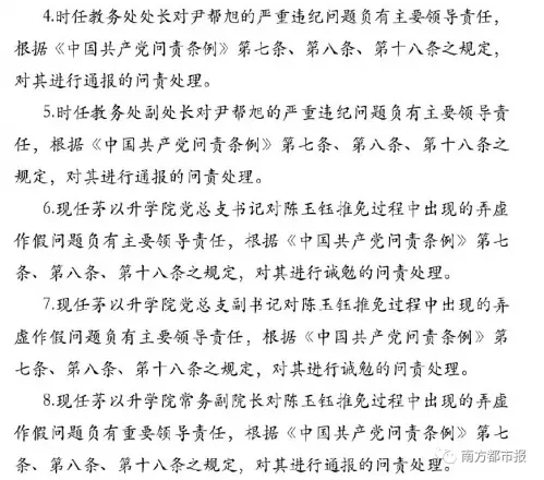 2:信息科學與技術學院教師陳帆違反廉潔從業紀律,師德失范,給予其黨內嚴重警告處分,給予其記過的政紀處分,取消其研究生導師資格。