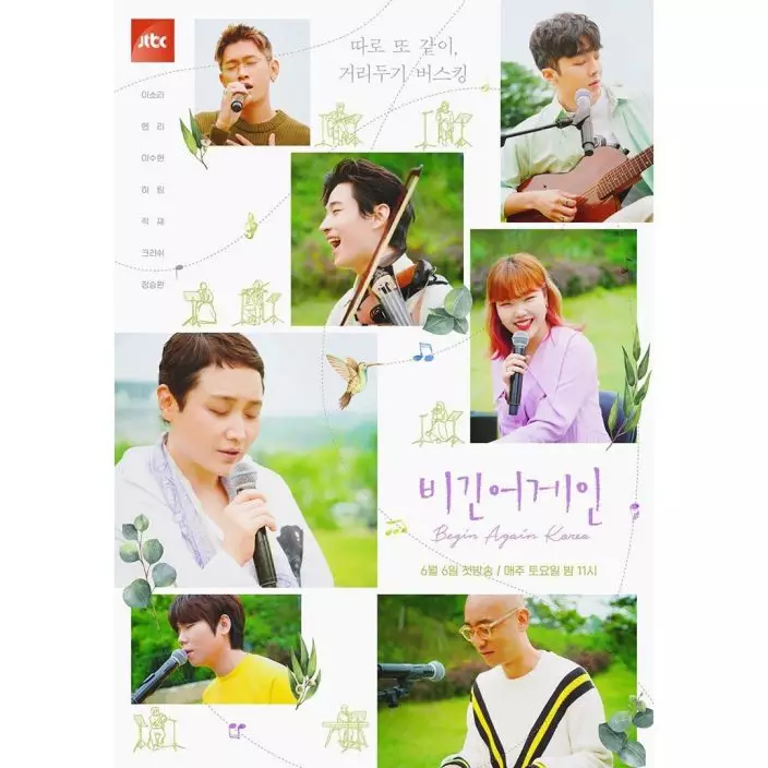 《Begin Again》為韓國JTBC電視台的音樂節目,由多名韓國音樂人和歌手組成「Busking」團隊,在海外陌生的城市挑戰在街頭路演,過往幾季都大獲好評,曾去過英國、葡萄牙、匈牙利、意大利、德國等地,向外國人展現了韓國音樂人的實力之餘,所翻唱的歌曲也為節目觀眾帶來輕鬆療癒的感覺。