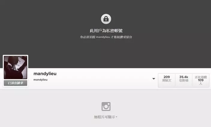 早前IG帳戶公開的Mandy不時驚喜,不過大家以後要追蹤還要等送出的請求獲批先再有得睇嚕!