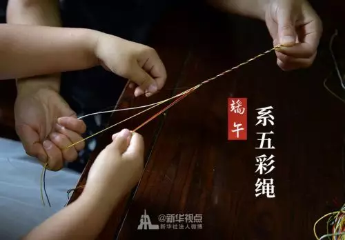在古代,人們迷信端午節這天是一年中最不吉利、毒氣最重的日子。所以,端午節時,家家戶戶都要在孩子手腕上帶上五彩繩,就是用紅、黃、藍、綠、紫五種綵線編成的線繩,以辟邪驅瘟、逢凶化吉。佩戴五綵線這一風俗,最早在東漢應劭著的《風俗演義》中就有記載,說把它系在臂上可避除兵鬼、不染病瘟。