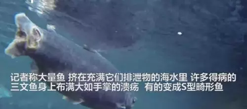 一眼望去,到處都是三文魚的排泄物,水已經渾濁地看不清。死魚沉入海底,病魚身上裸露著巴掌大的潰瘍。