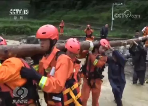 半個小時後,一條簡易的應急橋樑搭建完成。隨後,消防救援人員開始由遠到近集結光榮村受災群眾,最終陸續將42名群眾轉移至鎮上安全地帶安置。