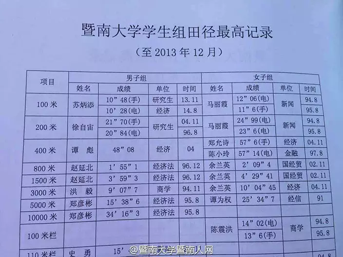 蘇炳添保持校內比賽100米記錄。(暨南大學圖片)
