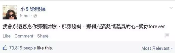 小S徐熙娣亦在FB悼念故友。