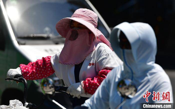 圖為福州市民烈日下「全副捂裝」出行。 張斌 攝