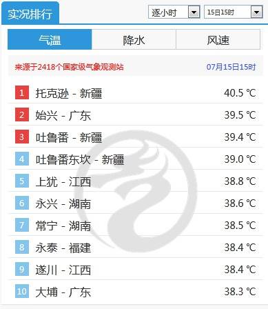 其實,最近一段時間,南方多地已經進入「燜蒸」模式。以7月15日15時為例,全國氣溫排名前十的城市中,有7個是南方站點,溫度都在38℃以上。