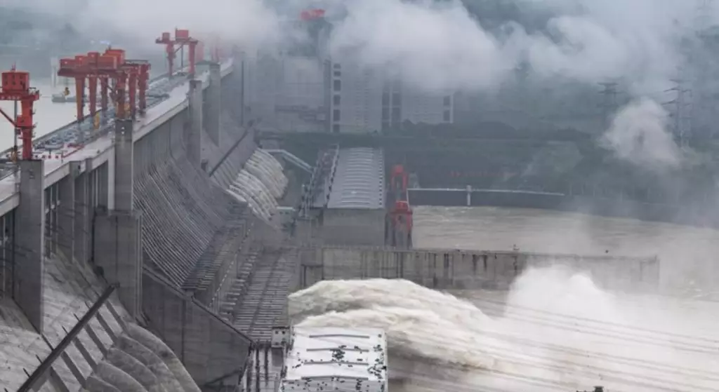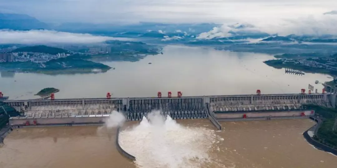 △17日傍晚,三峽大壩開啟泄洪深孔泄洪。