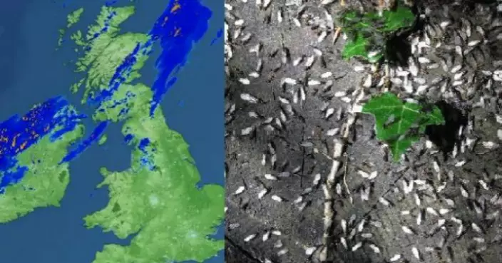 據悉,英國每年7月都會被成群的飛蟻入侵,1天內出現在英國各地,鋪滿天空,但在幾個小時後就會消失。因「蟻后」跟「蟻王」在氣候環境恰到好處時,便會成群離巢交配,導致飛蟻滿天飛,英國人也稱其為「飛蟻日」。