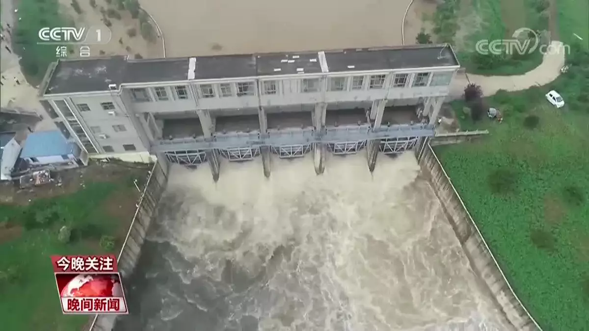 7月20日8時31分,安徽淮河王家壩閘水位已達29.75米,超過保證水位,王家壩正式開閘泄洪。