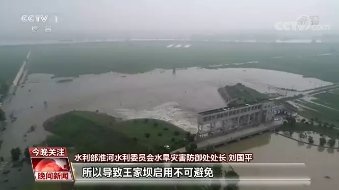 水利部淮河水利委員會水旱災害防禦處處長 劉國平:淮河王家壩以上主要是山丘區,山丘區大家知道就是洪水來得比較快,到了王家壩以後就是中游,洪水下泄由於受到河勢比較平緩,下泄很慢;第二方面,7月10日以來,兩淮,淮河以南和大別山區連續強降雨,決定了淮河的洪水漲勢很快,所以導致王家壩啟用不可避免。