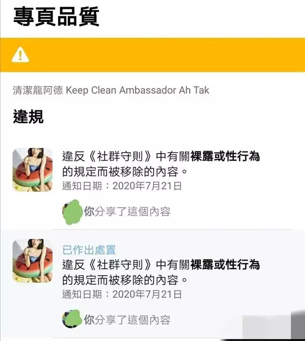 清潔龍阿德的貼文被移除。清潔龍阿德