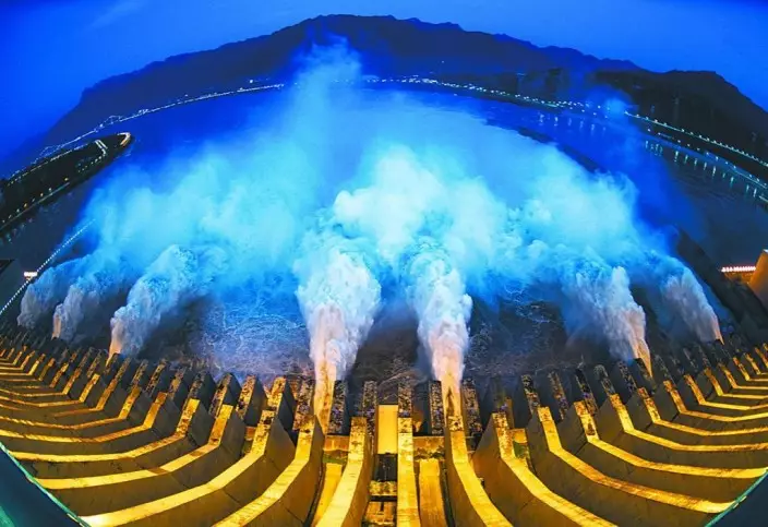 三峽集團流域樞紐管理中心負責人:水庫洩洪只是水庫通過洩洪設施出流的一種形式,一般來言,水庫出流優先考慮通過機組,只有在出庫流量超過機組過流能力的時候,才會啟用深孔、表孔等洩洪通道,但水庫洩洪並不等於水庫沒有發揮防洪作用。例如本月2日14時,三峽水庫入庫洪峰流量達5.3萬立方米/秒。根據長江水利委員會的調度指令,需控制三峽水庫出庫流量在3.5萬立方米/秒。此時,三峽電站34台機組全開滿發流量約為3.1萬立方米/秒,因此,需要將剩餘的約4000立方米/秒的流量通過洩洪通道下泄。三峽儘管在洩洪,但總出庫流量為3.5萬立方米/秒,仍比入庫流量5.3萬立方米/秒小,仍在發揮攔洪作用。三峽水庫的攔洪減輕了鄱陽湖的防洪壓力,避免了鄱陽湖湖口站超保證水位。