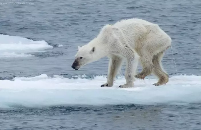 根據「自然氣候變遷」(Nature Climate Change)期刊今天刊登的研究,氣候變遷正造成北極熊覓食困難、飢餓致死,預料80年內可能幾乎消失。