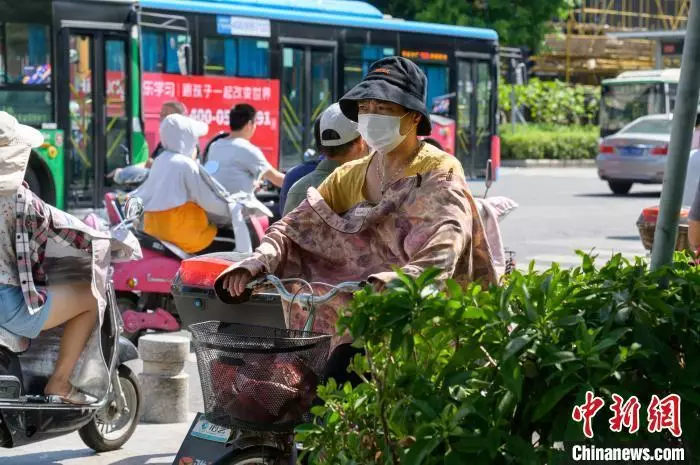 資料圖:7月13日福州民眾出行「全副武裝」抵禦烈日。 李南軒 攝
