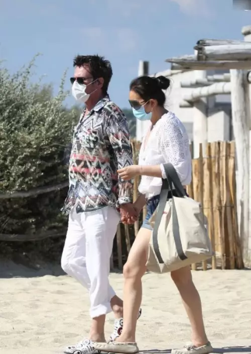 影星鞏俐最近被外媒影到與老公Jean-Michel Jarre到法國南部度假,她身穿白色恤衫及牛仔短褲,而老公就身穿花色恤衫,白色七分長褲,而且平底鞋的圖案更與上衫襯到絕,十分有型。二人都戴實口罩,相當有防疫意識。
