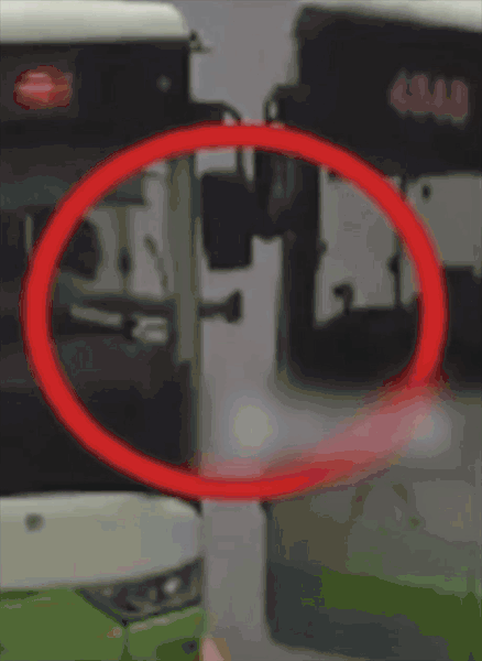 兩輛公交車「碰頭」