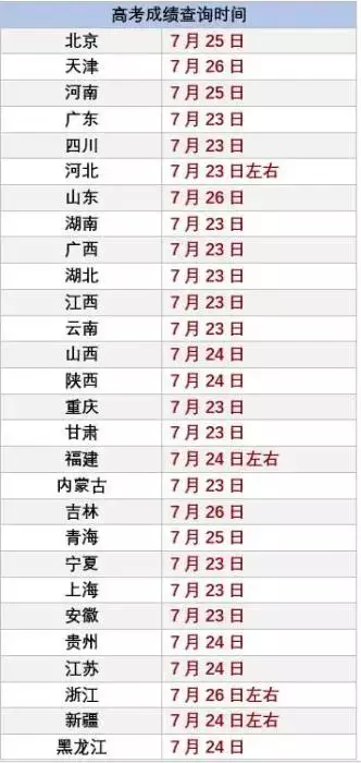 根據各省份此前公佈的「放榜」時間,23日起各地將陸續公佈高考成績,查分時間主要集中在23至26日。