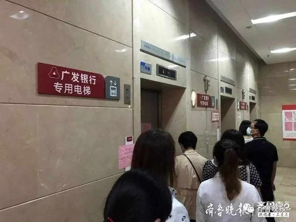 據了解,濟南魏家莊萬達廣場D座寫字樓共有26層,其中1—10層、24—26層為廣發銀行辦公場所,其他樓層則為多個公司、企業的辦公場所。鑒於此, 該棟寫字樓的6部客梯,3部便為廣發銀行員工專用,11-23層用戶則只能使用另外3部電梯。