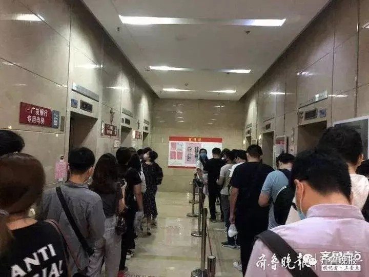 梯的隊伍早已延伸到寫字樓外部十幾米,寫字樓內更是從電梯間到大堂繞了一大圈才延伸出去,粗略估計,僅在大堂內就有幾十人在排隊,十分壯觀。