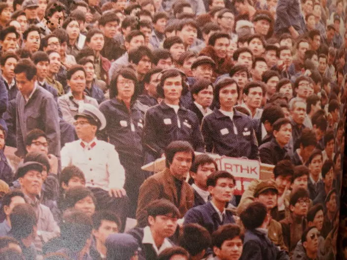省港盃足球賽,何氏兄弟在人海中講波,熱鬧非常。 受訪者圖片