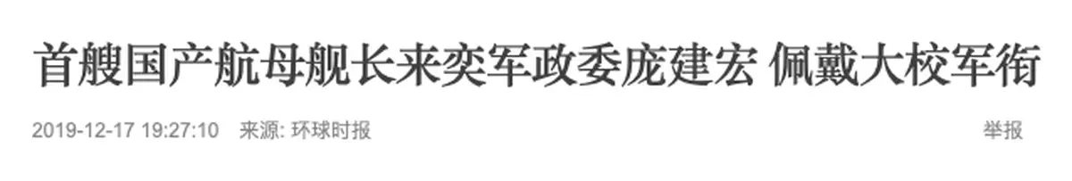 龐建宏是首艘國產航母山東艦的政委,他擔任該職務時,還佩戴大校軍銜。這次的新聞畫面顯示,他已經是少將了。