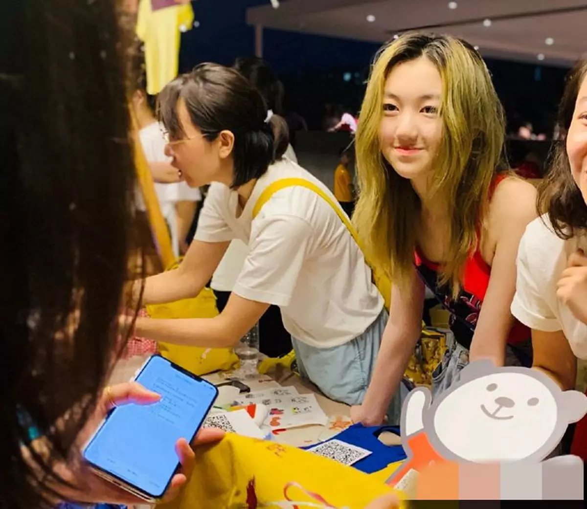 染上一頭金髮的李嫣笑面迎人,落力義賣籌款。