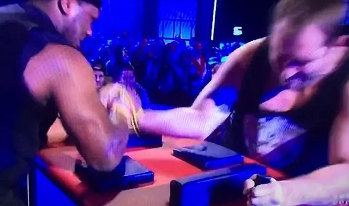 比拼甫開始,兩人勢均力敵,但Ben的手臂突然被扳倒,肌肉扭曲,他當場慘叫。主持人發現不妥,立即暫停節目,改播廣告。