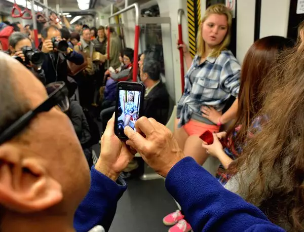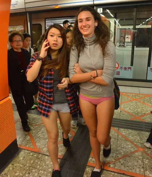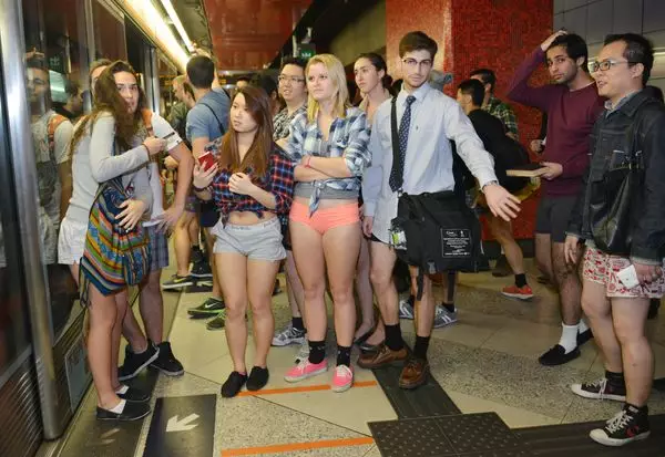 當街除褲的風氣蔓延到香港。一班「後生仔」在港鐵只著底褲搭地鐵,響應世界「無褲日」搭地鐵(No Pants Day Subway Ride)。